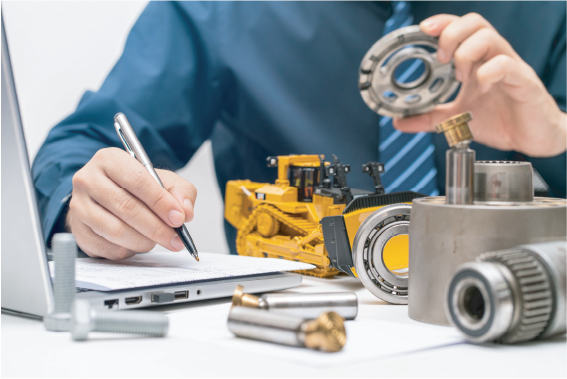 Material rubber, metal, dan kompon pendukung dengan standar ketat.